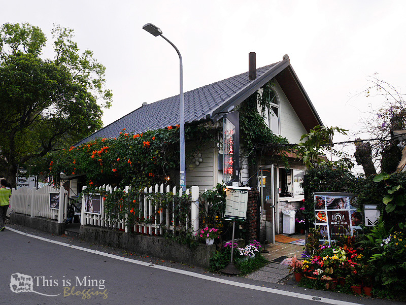 斜頂的小木屋外觀,看起來很歐式,靜靜佇在路邊。