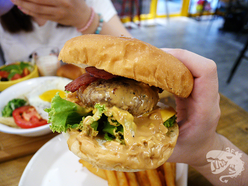 又圓又飽滿的手打牛肉排,搭上滾滾流下的花生醬瀑布,我想大部分的吃貨很難抗拒這樣充滿誘惑力的畫面。